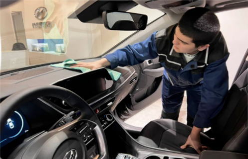 - Проведем обработку кожаных изделий салона.